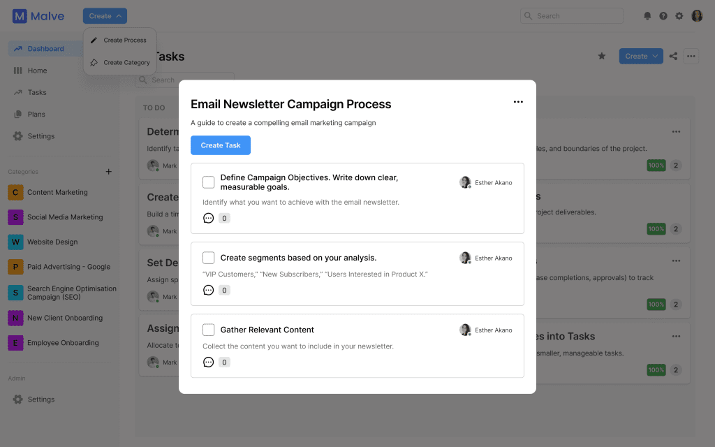 Process Malve helps businesses to save time on onboarding new team members, create processes easily and run as a well oiled engine.